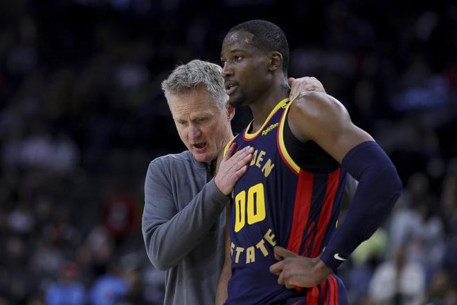 一个月后,勇士再次缺兵少将。在六天四赛的赛程里,库里、巴特勒和格林都被轮休,科尔赛前接受采访时,表示过去10场比赛仅出战1场的库明加会获得机会。但就在这段采访结束1个小时后,勇士队的伤病名单出现了库明加的名字,伤情是腰部酸痛。