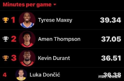 果然火箭主帅艾米-乌多卡,就被当地很多球迷抨击,因为除了76人后卫马克西,另外两名火箭核心阿门-汤普森和杜兰特,出场时间都排在前三。此外湖人老大东契奇,似乎也出现体能透支,毕竟对阵开拓者比赛,他就因为腹股沟酸痛缺阵。
