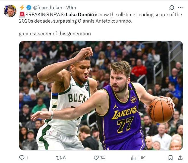 新时代得分王诞生!东契奇37+三双刷7纪录怒吼释放湖蜜:全球最强