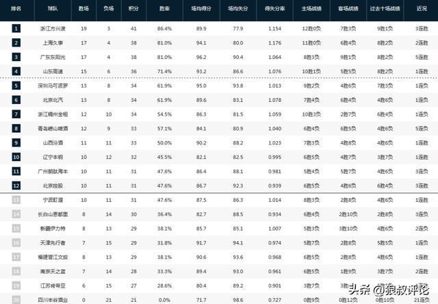CBA最新排名:广厦捍卫领头羊,山东险胜广州进前4 吉林离谱输球