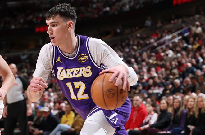 本场比赛中,湖人的先发锋线新星杰克-拉拉维亚(Jake LaRavia)的表现算得上是一塌糊涂。拉拉维亚全场出场23分16秒,投篮7中2,三分线外6中1,得到了5分2篮板2助攻1抢断1盖帽的数据,还有2次失误和3次犯规,正负值也是低到了全场最低的-19。拉拉维亚在攻防两端都没有展现出基本的竞争力,他的进攻效率一塌糊涂,他在三分线外的手感非常糟糕,他也没有展现出应有的得分能力,在进攻端严重拖了球队的后腿。拉拉维亚本身也不是什么出色的防守者,他也很难在这种情况下在防守端发挥出更大的作用。很显然,拉拉维亚在先发阵容中的表现处处受限,打得很不舒服,可以说是令人失望至极。