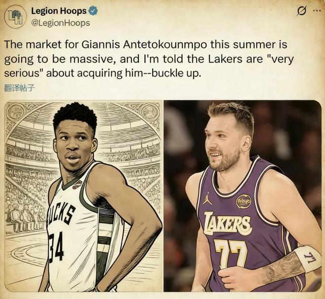 一直以来,湖人都是字母哥的潜在追求者之一,东契奇也曾公开表达过想和字母哥联手的想法。