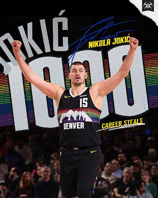 约基奇达成生涯1000次抢断里程碑。