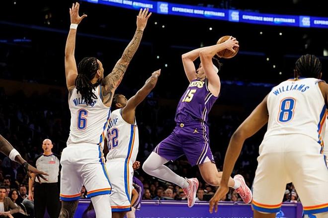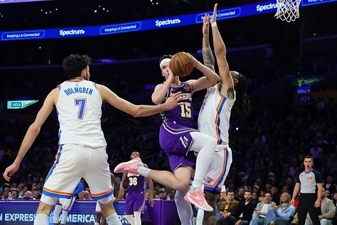 在此前的一场NBA常规赛中,俄克拉荷马城雷霆经过苦战后以119比110战胜了主场作战的洛杉矶湖人。本场比赛后,结束了两连败的雷霆的战绩提升到了41胜13负,继续排名西部榜首位置,与身后的圣安东尼奥马刺的胜场差为4场;而结束了3连胜的湖人的战绩则是下滑到了32胜20负,继续排名西部第5位,与身前的休斯顿火箭和身后的明尼苏达森林狼的胜场差均为半场。