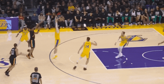 湖人进攻效率联盟第九。五个人场均得分两位数,四个人场均2助攻。