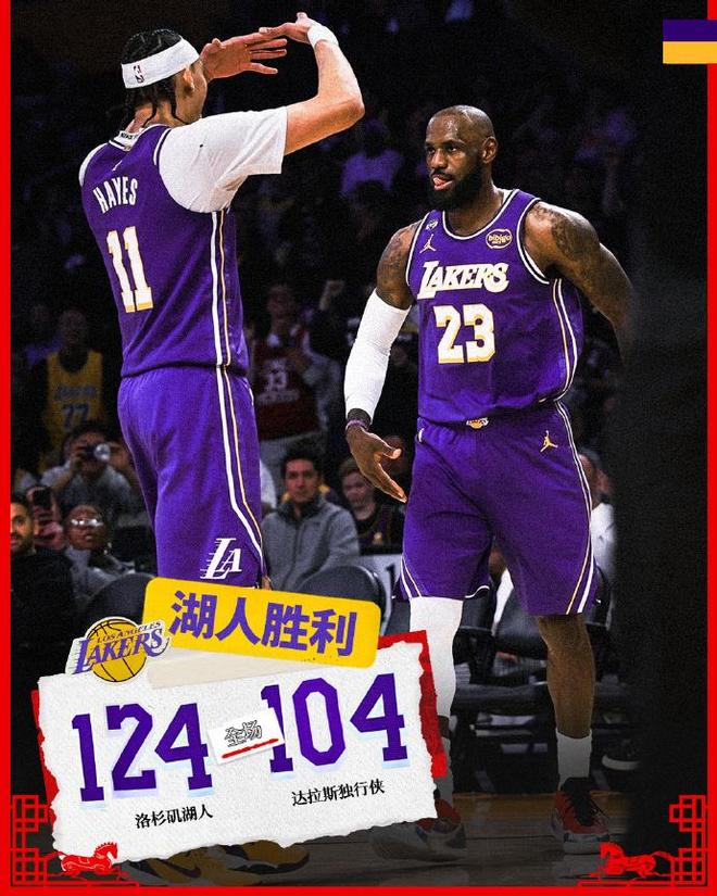 面对开启摆烂模式的独行侠对决,湖人上半场仅领先1分,但下半场詹姆斯攻传结合率队逐步扩大20+优势,他也是达成三双数据,率领湖人轻松以20分优势大胜独行侠结束2连败。