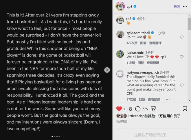 祝福保罗,希望CP3退役之后的生活更精彩!