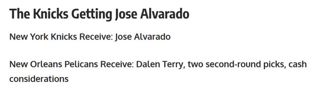 交易一:尼克斯4换1“老六”