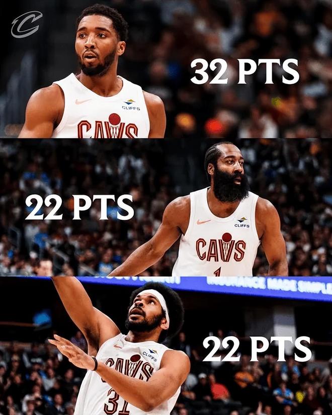 哈登的加盟让骑士的后场组合变得极具兼容性。米切尔作为持球爆破手,能撕裂防线制造空间;哈登则以组织和投射为核心,擅长利用挡拆和传球撕开对手防线。两人一攻一传、一突一投,互补性极强。更重要的是,这套组合直接激活内线的阿伦。阿伦本赛季出战34分钟,16投10中,罚球4中2,高效砍下22分13篮板1助攻的数据。在莫布里缺阵的单塔阵容下,阿伦面对约基奇的防守压力丝毫不落下风。他不仅在护框端限制了掘金的内线冲击,还在进攻端多次顺下接球终结。