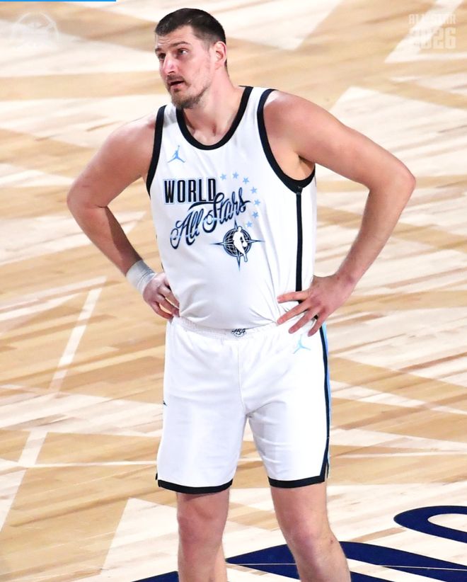 尼古拉-约基奇作为全明星先发,他是世界队的第一核心,结果他仅在第一场VS美国星队的比赛中登场5分05秒,1中0,怒砍0分2篮板0助攻,正负值-3。在第二场对阵美国条纹队的比赛直接被拉贾科维奇DNP了。