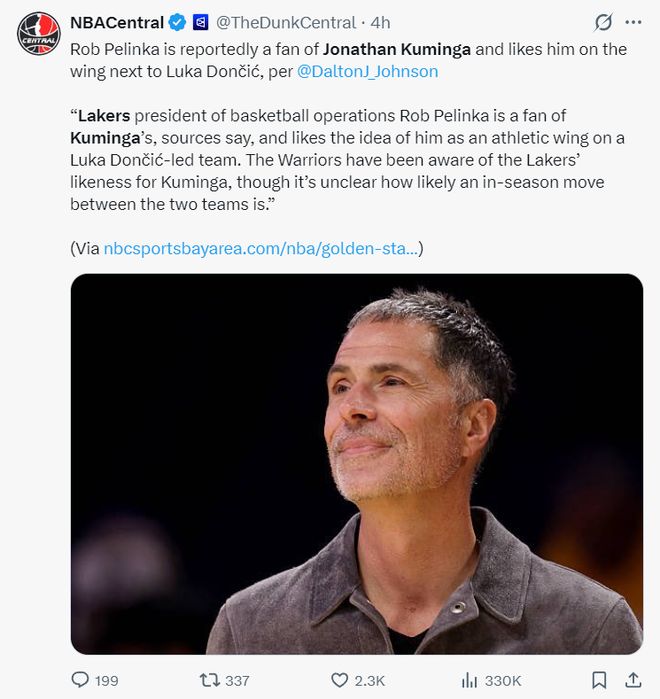 湖人队对勇士库明加有兴趣,佩林卡是库明加粉丝