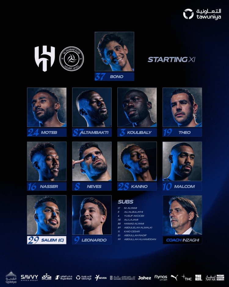 2025-11-01 00:03:43利雅得新月vs利雅得青年人首发:内维斯、特奥、库利巴利出战