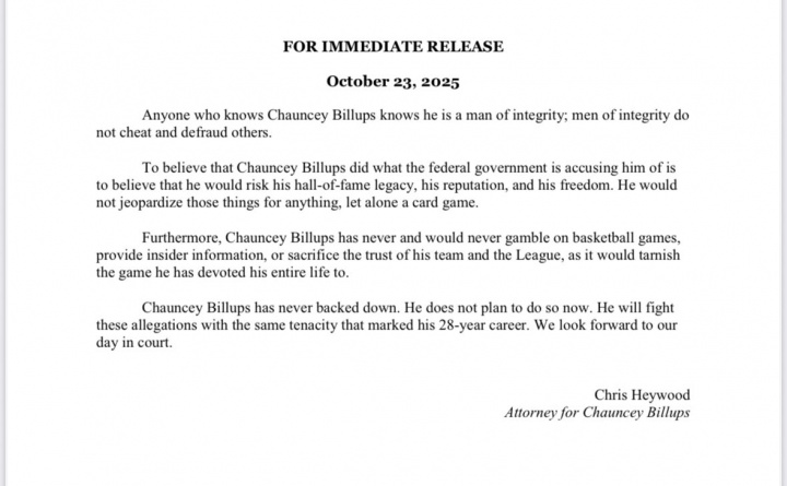 此外,昌西-比卢普斯从未也绝不会参与篮球赌博、泄露内幕信息,或背弃球队与联盟的信任——这都将玷污他奉献终身的体育事业。